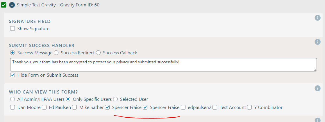 In this example, only Spencer Fraise will have access to the form (as will anyone logged on as Administrator. Administrator has access to all forms)