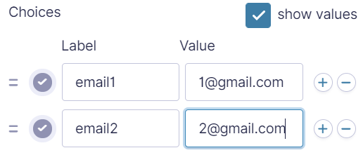 In this example, there is a Radio button on the form (input 6). There are 2 choices (yes=0, and no=1). When these are chosen, the hidden location field will be updated with the email address defined in the dropdown location field (Here are the details for creating the location field - 5. Create a Form) This is what the example of the location field: